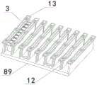 Get the frame module 83 and locate the front portion of frame 2, be equipped with shell 1 in frame 2 outside, the carousel is located the rear of getting frame module 83, temperature culture module 87 is located carousel one side, sample frame module 86 and reagent module 5 are located the both sides of getting frame module 83 respectively, pusher 84 includes X to push mechanism 6 and Y to push mechanism 7, it pushes to carousel 19 through Y to push mechanism 7 to get the lath on the frame module 83, lath 3 on the carousel 19 passes through X to push mechanism 6 and gets into temperature culture module 87, get into detection module 88 after the temperature culture finishes and detect.