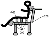 在图3a中,人300坐在可倾斜床100上,可倾斜床100可被调整为直立位置,如图2b所示。在图3b中,将轮椅200或其它移动坐具推到床100旁边,与其对齐并固定。然后,将衬垫122a或气囊升高或充气,从而将使用者抬放到坐垫102上方。然后,通过可伸缩细长支撑装置130或伸缩臂130a(与移动坐具200的坐垫202形成交错结构)将使用者放到轮椅200上。In Fig. 3a, a