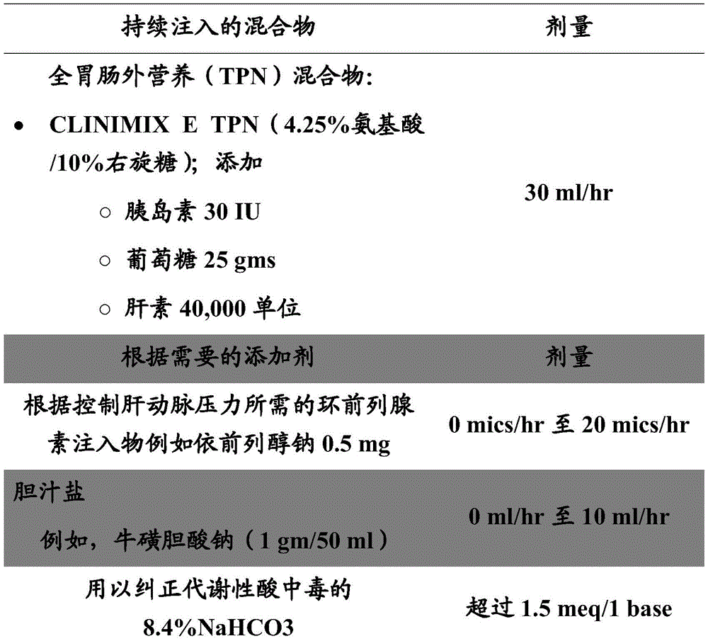 The continuous infusion uses integrated OCS-SDS to deliver the continuous infusion. Flolan was added to the HA influent (0.05 mg of Flolan in 50ml of Flolan diluent "1 mic/ml") at 0 to 20mic/hr (0 to 20ml/hr) as needed. CLINIMIX E TPN supplemented with 30IU of insulin, 25g of glucose and 40000U of heparin was continuously infused to PV at a rate of 30mL/h as filling began. Taurocholate sodium salt, gamma sterilized bile salt, was infused at a rate of 3mL/h (1 g/50mL sterile water) with the start of filling.
