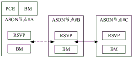 A plurality of nodes included in the ASON have ASON functions, and as can be seen from fig. 4(b), each node deploys a Bundle Mapping (BM) processing unit and a resource reservation protocol (RSVP) control unit.