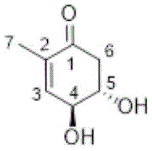 本发明所述的4,5-二羟基-2-甲基-烯酮(4,5-dihydroxy-2-methylcyclohex-2-enone),分子量为142,分子式为,C7H10O3,化学式如下:The 4,5-dihydroxy-2-methyl-enone (4,5-dihydroxy-2-methylcyclohex-2-enone) of the present invention has a molecular weight of 142 and a molecular formula of C 7 H 10 O 3 , and the chemical formula is as follows: