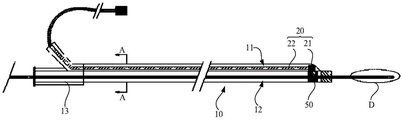 The positioning mark ring 50 is a developing ring made of developing materials such as tantalum or platinum-iridium alloy, has a length of 1-3mm, and is used for positioning.