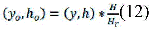 the concrete contents are as follows: the original size of the image is (W, H), the size of the image input into the ship detection, classification and hull part detection network after scaling is (Wr, Hr), the bbox in the output result is (x, y, w, h), and the position coordinate bbox (x) of the target in the original image iso、yo、wo、ho) The calculation methods of (A) are as follows: