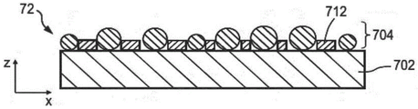 The first substance may include a plurality of structures having varying thicknesses. That is, the thickness distribution of the plurality of structures varies. The thickness distribution may be measured in the plane of the diffuser (e.g. the plane of the surface arranged to receive radiation). The thickness profile may vary by about a few nanometers. For example, the thickness profile of the structure may vary between a thickness of 0nm and 200 nm.