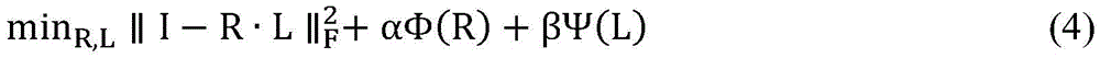 where Φ (R) and Ψ (L) represent a priori assumptions for the reflective layer R and the illumination layer L, respectively. To solve the problem, two new variables are introduced, namely a first intermediate variable P and a second intermediate variable Q, and equation (4) can then be rewritten as: