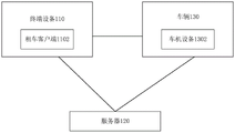 Fig. 1 is a schematic diagram illustrating a self-service car rental system according to an exemplary embodiment of the present disclosure, which relates to a terminal device 110, a server 120, and a vehicle 130, wherein a car rental client 1102 is installed on the terminal device 110, and the car rental client 1102 can receive information of a car rental user and upload the information of the car rental user to the server 120; vehicle device 1302 may be disposed in vehicle 130, and vehicle device 1302 may obtain vehicle information from the vehicle and upload the vehicle information to server 120. The terminal device 110 may be an electronic device that can be carried by a user, such as a mobile phone, a tablet computer, an intelligent watch, and an intelligent bracelet. The vehicle-mounted device 1302 has the functions of remote unlocking, vehicle searching and positioning through various modes such as App/bluetooth/network and the like, and can acquire vehicle key data such as electric quantity, oil consumption, engine revolution, endurance mileage, fault codes and the like of a vehicle in real time by connecting a vehicle-mounted OBD (On Board Diagnostics); server 120 may trigger the start and end of a rental car order, the locking operation and unlocking operation of vehicle 130, and the settlement and collection of an order rental fee according to the information of the rental car user acquired from rental car client 1102, the vehicle information acquired from in-vehicle device 1302, and the wireless communication connection between terminal device 110 and in-vehicle device 1302.