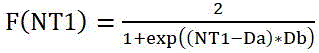 由以上公式(11)和(12)可见,当目标信号的效应贡献占比NT1超过某一预定阈值时,随着NT1增大时,目标信号的指数函数F(NT1)会随之快速减小,从而使Cost值快速减小,从而使当前的光阻模型成为更有选择。反之,当标信号的效应贡献占比NT1低于该预定阈值时,目标信号的指数函数F(NT1)基本保持不变,从而对Cost值基本没有影响。From the above formulas (11) and (12), it can be seen that when the effect contribution ratio NT1 of the target signal exceeds a predetermined threshold, as NT1 increases, the exponential function F(NT1) of the target signal will decrease rapidly , so that the Cost value decreases rapidly, making the current photoresist model more selective. Conversely, when the effect contribution ratio NT1 of the target signal is lower than the predetermined threshold, the exponential function F(NT1) of the target signal remains basically unchanged, thus basically having no impact on the Cost value.