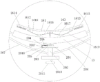 具体的,所述机械臂2还包括固定设于移动架上的导向盘212、固定设于导向盘中心处的固定轴213、固定套设于固定轴上的齿轮214、转动套设于齿轮上的旋转块215、可移动设于旋转块上的第一卡件216及第二卡件217、两端分别固定设于第一卡件和旋转块上的第十一弹簧218、两端分别固定设于第二卡件和旋转块上的第十二弹簧219、固定设于旋转块上的旋转架220、设于旋转架上的弧形面221,所述弧形面与所述导向盘接触,旋转架转动过程中弧形面沿着导向盘移动。Specifically, the mechanical arm 2 also includes a