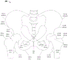 Fig. 1A is a schematic diagram of a front view of a pelvic girdle of a patient, illustrating various pelvic anatomical features.