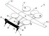 具有VTOL能力的无人机(UAV),例如多旋翼飞行器,通常包括连接到机身的电机阵列,并且由于多旋翼飞行器的悬停能力,无人机能够提升通常较重的有效载荷,并在末端位置部署所述有效载荷,且前进速度很小甚至没有。电机通常由可充电电池组供电,并且因此由于当前电池技术的存储容量,其飞行时间有限。此外,多旋翼飞行器通常在整个飞行过程中具有高功耗,并且以相对低的飞行速度飞行,这与有限的飞行时间相结合,导致多旋翼飞行器具有相对低的航程。Unmanned Aerial Vehicles (UAVs) with VTOL capabilities, such as multi-rotor vehicles, typically include an array of motors attached to the fuselage, and due to the hovering capability of the multi-rotor vehicle, the UAV is able to lift often heavy payloads and The terminal position deploys the payload with little or no forward velocity. The motor is usually powered by a rechargeable battery pack, and therefore has limited flight time due to the storage capacity of current battery technology. In addition, multi-rotor aircraft usually have high power consumption throughout the flight and fly at relatively low flight speeds, which combined with limited flight time results in multi-rotor aircraft with relatively low range.