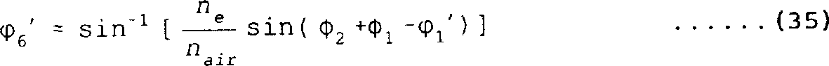 这里,可以看到,出射角4是与方程式26中的出射角′2相同,出射角4′与方程式27中的2′相同。