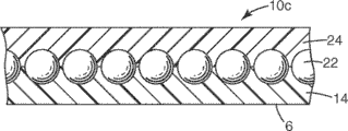 Fig. 5 is the amplification view of " embedding lens " type lenticule sheet material;