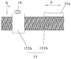 In the embodiment shown in fig. 4 to 6, the toggle element 15a is a knob disc, the rotating element 15b is a knob rod extending along the toggle element, and the positioning sensor 14 is disposed on the knob rod, so that an operator can toggle the knob disc with his finger to make the knob rod drive the positioning sensor 14 to rotate. In this embodiment, a portion of the knob tray is exposed from the housing 100 to facilitate finger contact therewith for toggling the knob stem. In the embodiment shown in fig. 7 and 8, the wave-motion member 2 is movable in a straight line and drives the rotation member 15b to rotate, and the position sensor is arranged on the rotation member 15b to move by toggling the toggle member 15a, thereby rotating the position sensor. Specifically, the rotating element 15b is a ball screw, in the embodiment shown in fig. 7, the positioning sensor 14 is connected to a screw 151b of the ball screw, the toggle element 15a is connected to a nut 152b of the ball screw, at this time, the toggle element 15a is disposed on the nut 152b, and an operator can toggle the nut 152b to move along the F direction through the toggle element 15a, so that the screw drives the positioning sensor 14 to rotate along the N direction. In the embodiment shown in fig. 8, the positioning sensor 14 is connected to a nut 152b of the ball screw, and the toggle member 15a is connected to a screw 151b of the ball screw, so that an operator can toggle the screw to move along the direction F by the toggle member, so that the nut drives the positioning sensor 14 to rotate along the direction N.