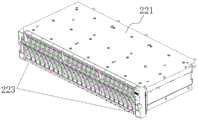 As shown in fig. 11 and 12, the chassis head 220 is connected to the second accommodating space 212, and includes a housing 221 for mounting a hard disk bracket 223, and a plurality of hard disk brackets 223 are mounted in the housing 221.