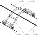1. the device comprises a first travel switch, 2, a first travel switch mounting fixing seat, 3, a front wheel, 4, a gutter, 5, a front wheel fender tile, 6, a first proximity switch, 7, a wheel guide rail, 8, a second travel switch, 9, a second travel switch mounting fixing seat, 10, a rear wheel, 11, a base frame rear frame, 12, a rear wheel fender tile, 13, a fourth proximity switch, 14, a motor protection device, 15, a telescopic rod, 16, a fixing and adjusting device, 17, a third travel switch, 18, a cross pipe buckle, 19, a greenhouse ridge, 20, a second proximity switch, 21, a transmission chain wheel, 22, a wire wheel bracket, 23, a fixing plate, 24, a wire wheel, 25, a detection rod fixing device, 26, a detection rod, 27, a shed roof, 28, a main suspension, 29 and a third proximity switch.