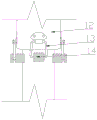 The connecting piece is a sleeve 12 with a downward opening, a buckle 13 is arranged on the outer side of the sleeve 12 in the horizontal radial circumference, and clamping seats 14 are uniformly arranged on the upper end of the supporting rod 11 in the horizontal radial circumference; the inner circle diameter of the sleeve 12 is larger than that of the support rod 11.