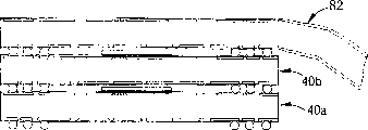 As shown in figure 12, upside-down mounting chip BGA encapsulation body 40b can connect a soft board device (flex-board) 82, to connect other circuit external.As shown in figure 13, upside-down mounting chip BGA encapsulation body 40b also can connect a heat abstractor (heat slug) 84, improves radiating effect.Heat abstractor 84 can be manufactured into the external form (not shown) of a BGA substrate, also is made into metal (copper) fin as Figure 13 or the external form (not shown) of other radiating wings.