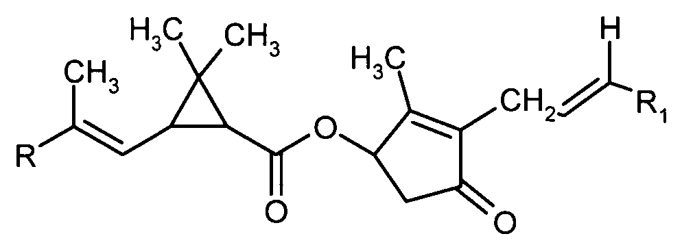 - VQXSOUPNOZTNAI-UHFFFAOYSA-N Pyrethrin I Natural products CC(=CC1CC1C(=O)OC2CC(=O)C(=C2C)CC=C/C=C)C VQXSOUPNOZTNAI-UHFFFAOYSA-N 0.000 claims abstract description 9