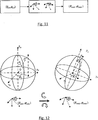 12 zeigt einen Vergleich zwischen Achsenänderungen von virtuell nach real aufgrund von virtuellen Schwenkungs- und/oder Neigungsrotationen. Der Ort des einfallenden Strahls ändert sich nicht, und somit stehen die entsprechenden virtuellen Einfallstrahlwinkel und der reale Einfallstrahlwinkel wie gezeigt mit der Schwenkung und Neigung in Beziehung. Der Einfallstrahl ist durch die Winkel (θ, φ) dargestellt, wobei θ der Winkel zwischen dem einfallenden Strahl und der optischen Achse (dargestellt durch die z-Achse) ist und φ der Winkel zwischen der x-Achse und der Projektion des einfallenden Strahls an der x-y-Ebene ist. 12 Figure 12 shows a comparison between virtual-to-real axis changes due to virtual pan and / or tilt rotations. The location of the incident beam does not change, and thus the corresponding virtual incident beam angles and the real incident beam angle are related to the tilt and tilt as shown. The incident beam is represented by the angles (θ, φ), where θ is the angle between the incident beam and the optical axis (represented by the z-axis) and φ is the angle between the x-axis and the projection of the incident beam the xy plane is.