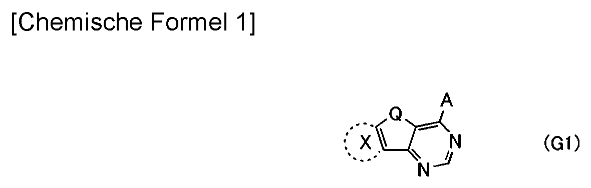 Eine neuartige organische Verbindung wird bereitgestellt. Das heißt, es wird eine neuartige organische Verbindung bereitgestellt, die effektiv zur Verbesserung der Zuverlässigkeit eines Licht emittierenden Elements beiträgt. Die organische Verbindung beinhaltet einen kondensierten Ring mit einem Pyrimidinring und wird durch die allgemeine Formel (G1) dargestellt. In der allgemeinen Formel (G1) stellt A eine Gruppe mit 6 bis 100 Kohlenstoffatomen dar und beinhaltet mindestens einen von einem aromatischen Ring und einem heteroaromatischen Ring. Der aromatische Ring und der heteroaromatische Ring können jeweils einen Substituenten beinhalten. Darüber hinaus stellt Q Sauerstoff oder Schwefel dar. Ein Ring X stellt einen substituierten oder unsubstituierten Naphthalinring oder einen substituierten oder unsubstituierten Phenanthrenring dar.A novel organic compound is provided. That is, a novel organic compound is provided which effectively contributes to the improvement of the reliability of a light-emitting element. The organic compound includes a condensed ring having a pyrimidine ring and is represented by the general formula (G1). In the general formula (G1), A represents a group having 6 to 100 carbon atoms and includes at least one of an aromatic ring and a heteroaromatic ring. The aromatic ring and the heteroaromatic ring may each contain a substituent. In addition, Q represents oxygen or sulfur. A ring X represents a substituted or unsubstituted naphthalene ring or a substituted or unsubstituted phenanthrene ring.
