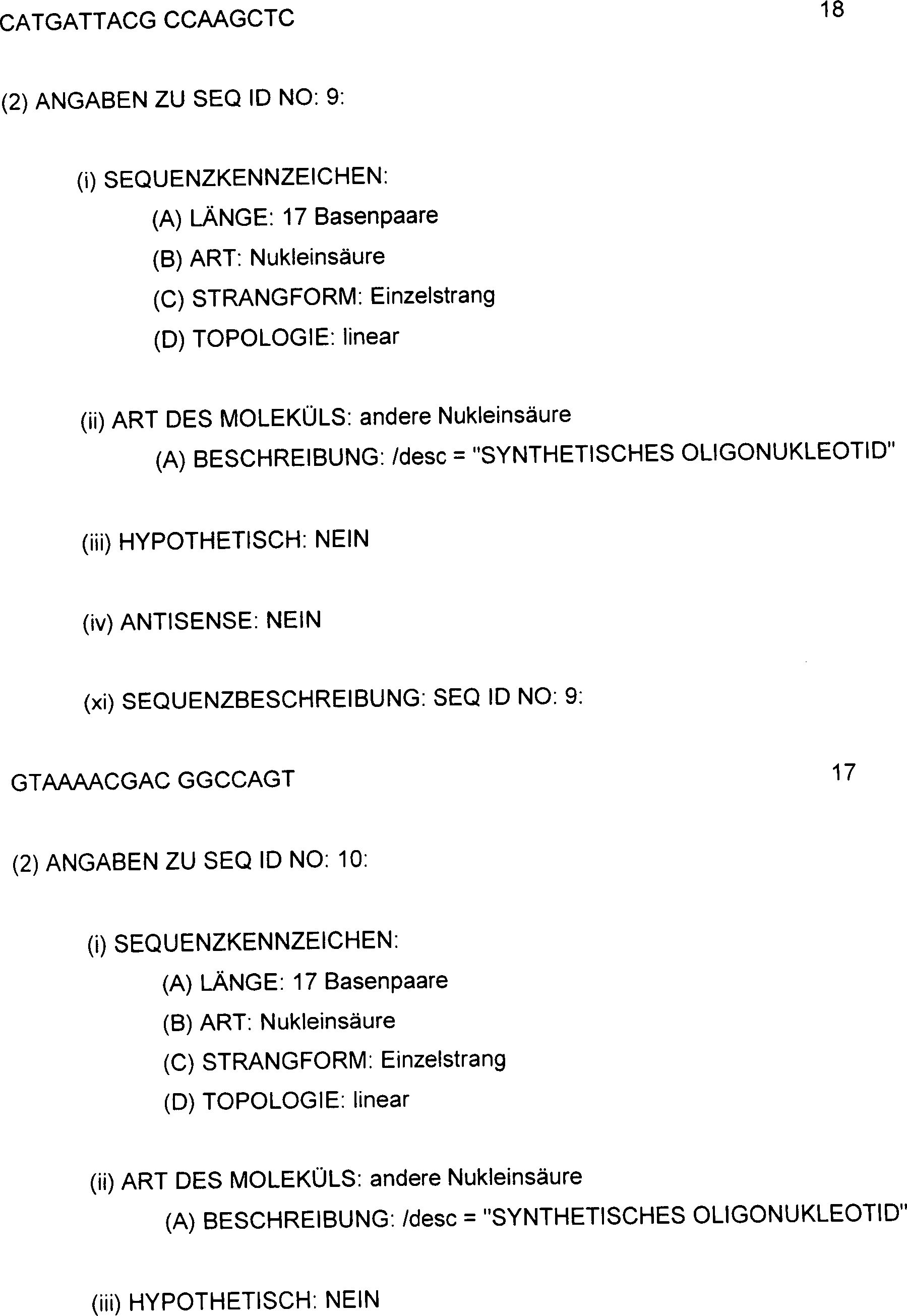 Jedoch beruht der Phagen-Display auf der Erzeugung von Nukleinsäurebibliotheken in vivo in Bakterien. Somit liegt die praktische Grenze für die Größe der Bibliothek, die von der Phagen-Display-Technologie erlaubt wird, in der Größenordnung von 107 bis 1011. selbst wenn man den Vorteil von λ-Phagen-Vektoren mit herausschneidbaren filamentösen Phagenreplikons nutzt. Die Technik ist vorwiegend auf die Selektion von Molekülen mit Bindungsaktivität angewandt worden. Eine kleine Anzahl von Proteinen mit katalytischer Aktivität ist ebenfalls unter Verwendung dieser Technik isoliert worden, jedoch war in keinem Fall die Selektion direkt auf die gewünschte katalytische Aktivität gerichtet, sondern entweder auf die Bindung an ein Analogon des Übergangszustands (Widersten und Mannervik, 1995) oder eine Reaktion mit einem Selbstmord-Inhibitor (Soumillion et al., 1994; Janda et al., 1997).However, the phage display relies on the generation of nucleic acid libraries in vivo in bacteria. Thus, the practical limit to the size of the library allowed by phage display technology is on the order of 10 7 to 10 11 . even taking advantage of λ phage vectors with excisable filamentous phage replicons. The technique has been applied primarily to the selection of molecules with binding activity. A small number of proteins with catalytic activity have also been isolated using this technique, but in no case was the selection directed directly to the desired catalytic activity, but either to binding to a transition state analog (Widersten and Mannervik, 1995) or a reaction with a suicide inhibitor (Soumillion et al., 1994, Janda et al., 1997).