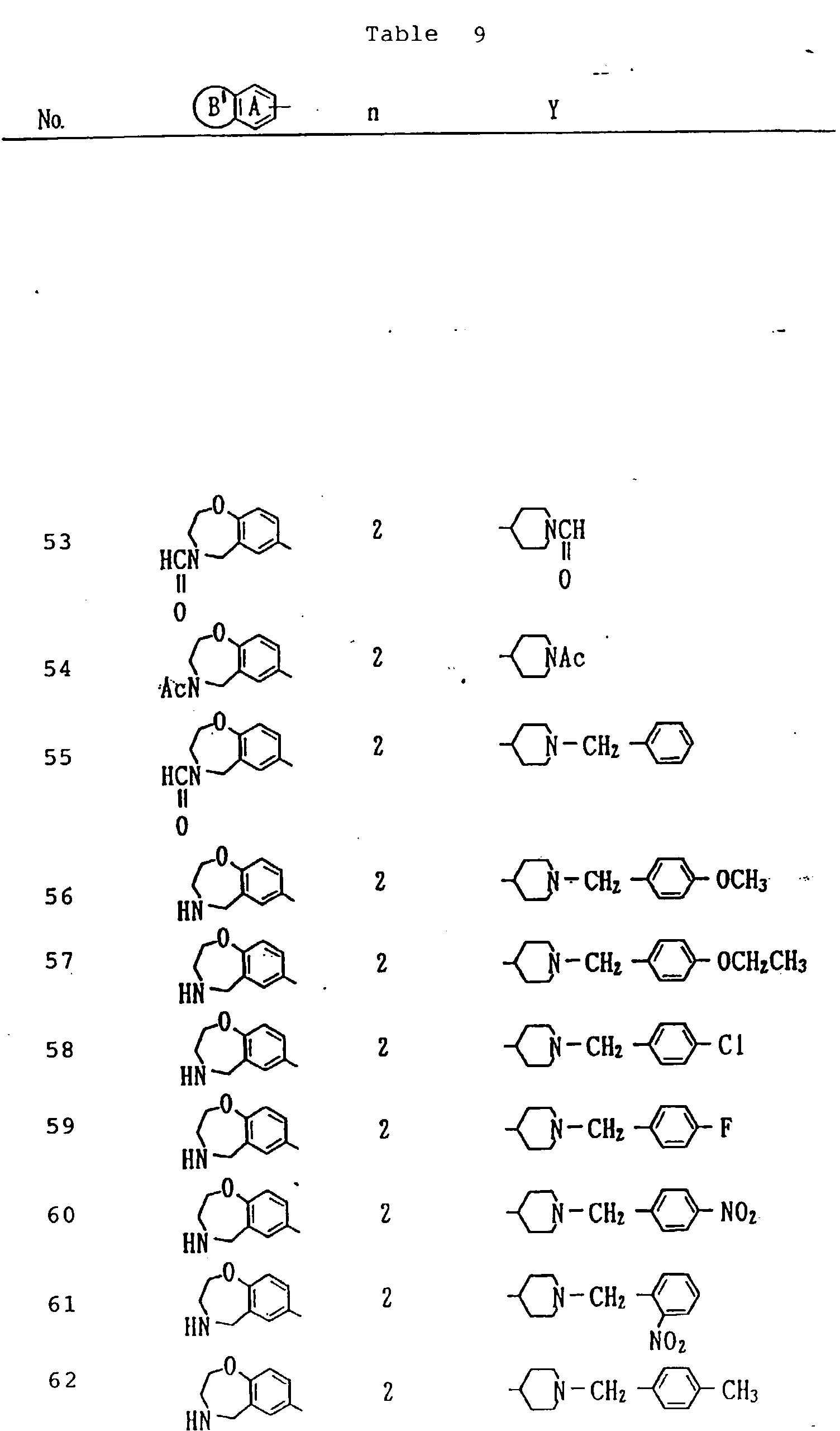 • the present invention was accomplished by investigating various aspects of heterocyclic compounds including novel compounds in biological activity and pharmacological action and by finding that the compounds having structural characteristics in bicyclic-heterocyclic group wherein the heterocyclic ring containing, the same or different, two or more hetero atoms, condensed on the benzene ring have unexpectedly excellent cholinesterase inhibitory activity and antidepressant activity, thus being useful as therapeutic and/or prophylactic agents for senile dementia. Based on these structural characteristics, these compounds show above-mentioned excellent actions.