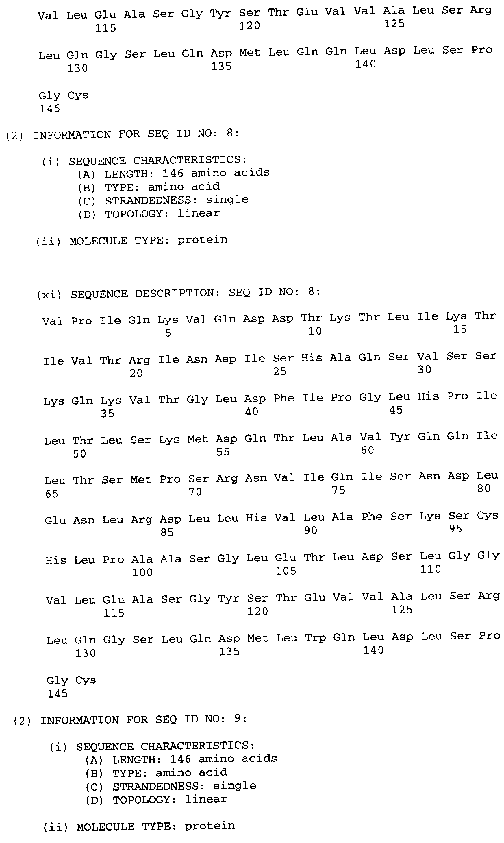 - amino acids are accepted by the United States Patent and Trademark Office as set forth in 37 C.F.R. ⁇ 1.822 (b) (2) (1993).