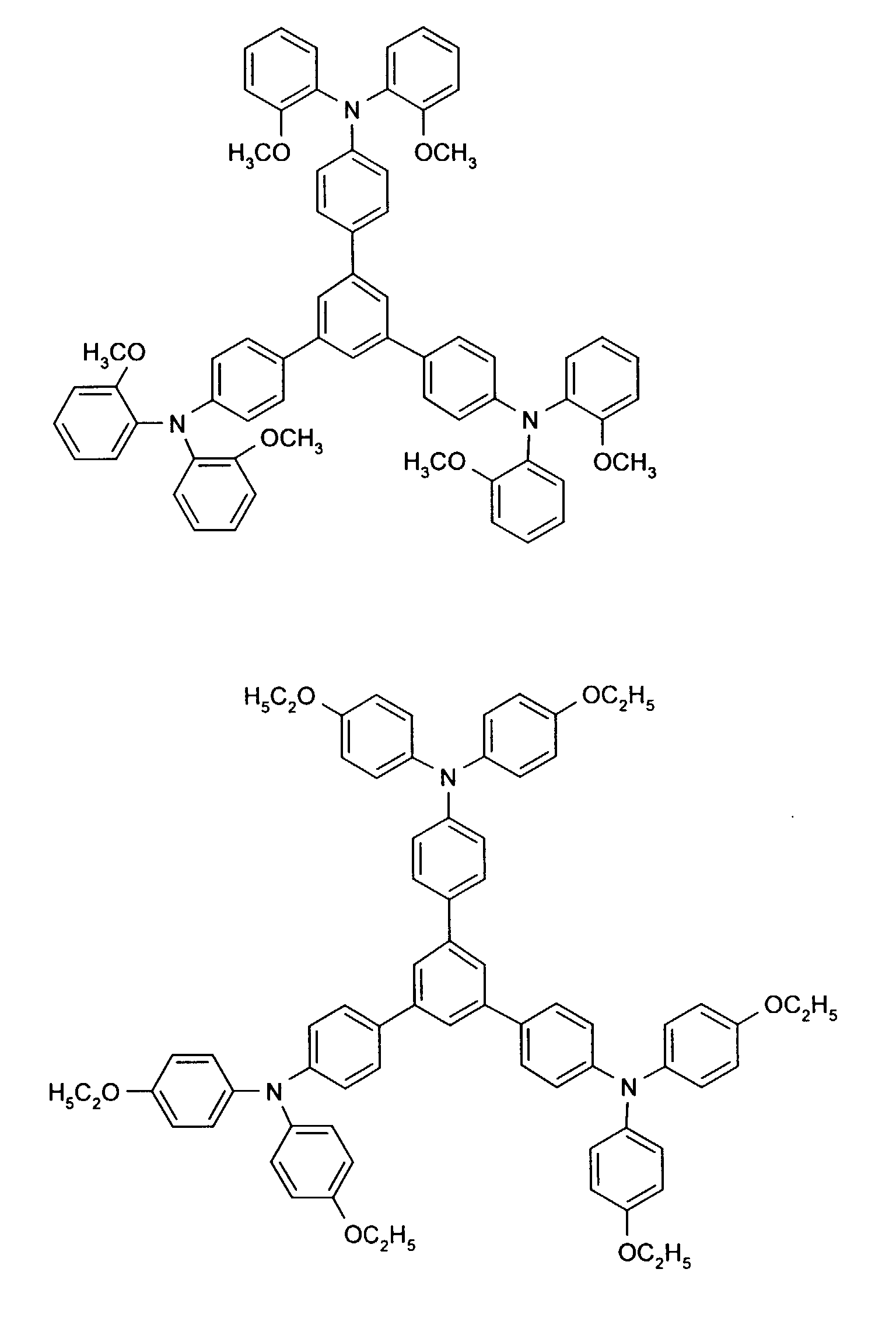 - Triphenylamine compounds and / or aromatic tertiary amines are preferred, the compounds mentioned by way of example being particularly preferred.
