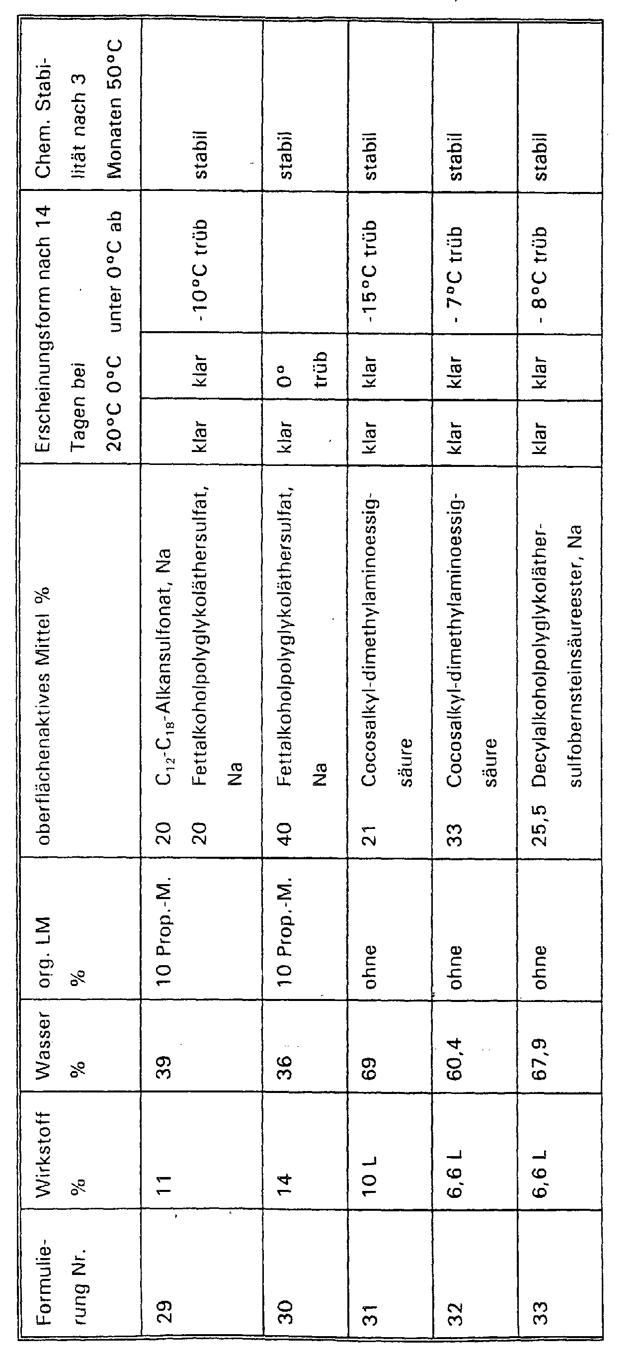 Weitere oberflächenaktive Substanzen sind insbesondere zwischen 4 - 15 Gew.-% in der fertigen Formulierung enthalten.Other surface-active substances are in particular between 4 - 15% by weight contained in the finished formulation.