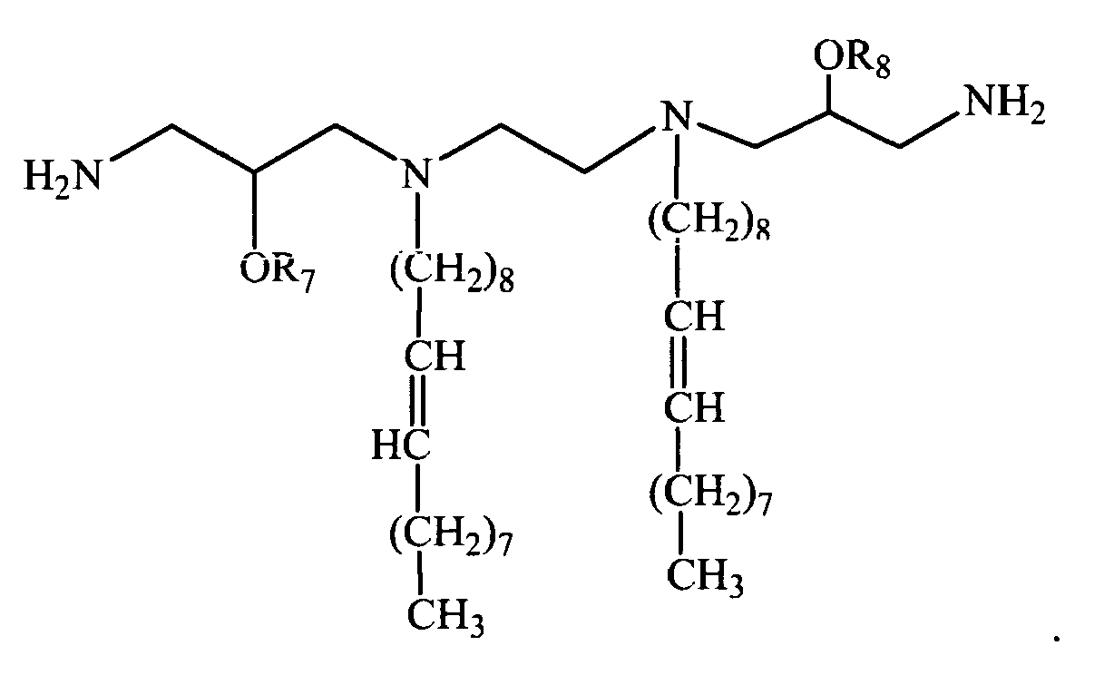 - KRSGKJZOVSYJSV-UHFFFAOYSA-N 1-amino-3-[4-[(3-amino-2-hydroxypropyl)-octadec-9-enylamino]butyl-octadec-9-enylamino]propan-2-ol Chemical compound CCCCCCCCC=CCCCCCCCCN(CC(O)CN)CCCCN(CC(O)CN)CCCCCCCCC=CCCCCCCCC KRSGKJZOVSYJSV-UHFFFAOYSA-N 0.000 description 4