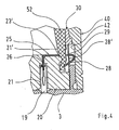 - FIG. 4 is shown in detail how the contact member 25 presses with its bending edge 28 'against the inner wall 42 of the metallic screw 40 to pass on the potential of the cable shield 52, which is guided through the opening 29 and abuts the resilient end 28.