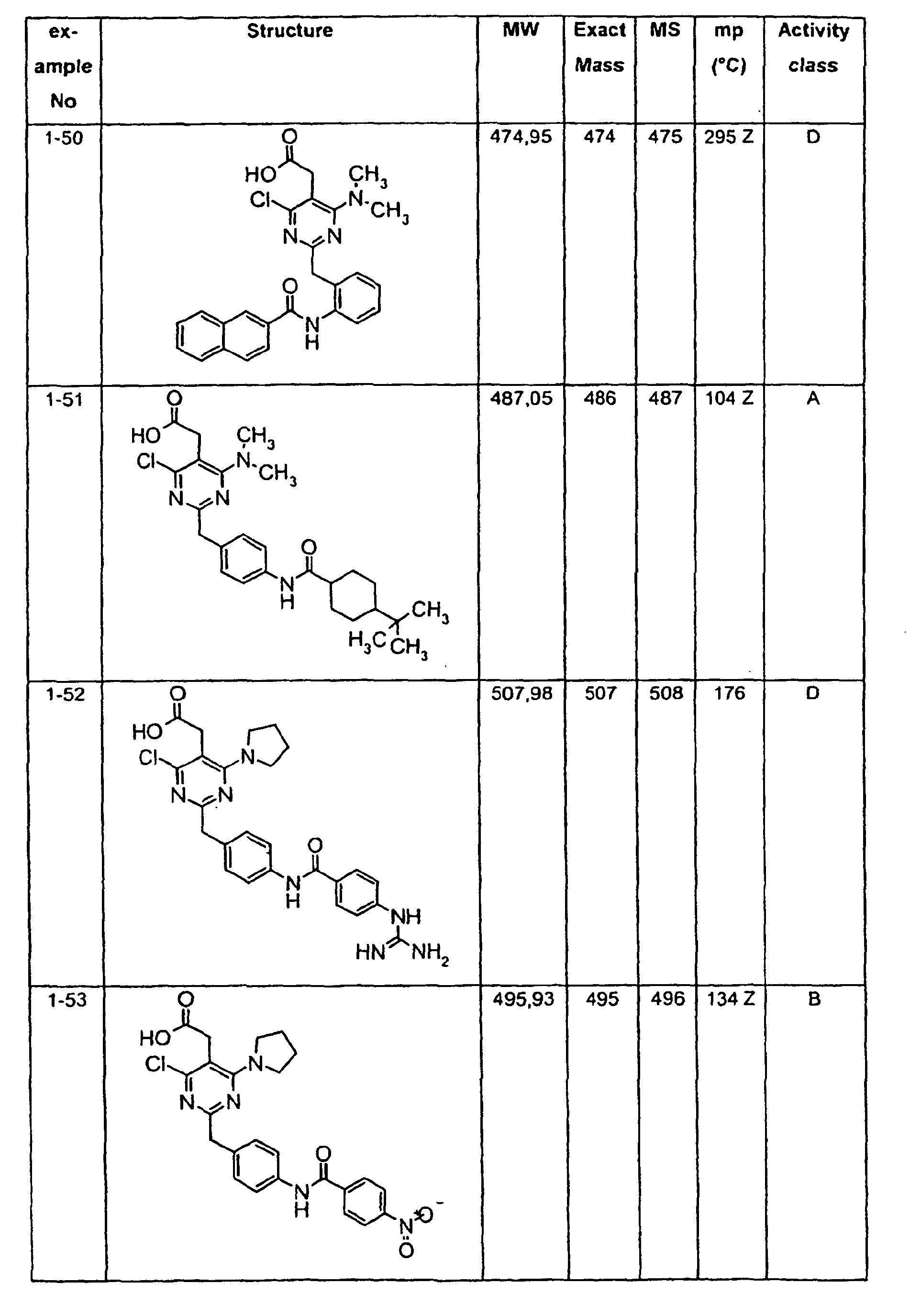 - OXZAIUCHPIZYDI-UHFFFAOYSA-N 2-[2-[[4-[(3,4-dichlorobenzoyl)amino]phenyl]methyl]-4-methyl-6-pyrrolidin-1-ylpyrimidin-5-yl]acetic acid Chemical compound N=1C(N2CCCC2)=C(CC(O)=O)C(C)=NC=1CC(C=C1)=CC=C1NC(=O)C1=CC=C(Cl)C(Cl)=C1 OXZAIUCHPIZYDI-UHFFFAOYSA-N 0.000 claims description 2