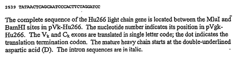 - this invention provides humanized antibodies and fragments thereof, wherein the variable regions have sequences comprising the CDR from mouse antibody 266 and specific human framework sequences (sequences SEQ ID NO:7 - SEQ ID NO:10), wherein the antibodies retain approximately the binding properties of the mouse antibody and have in vitro and in vivo properties functionally equivalent to the mouse antibody 266.