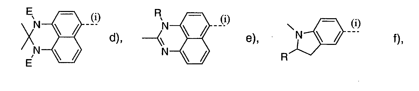 • the dichroic residue A may preferably be selected from the groups according to general formula IV: wherein the broken line (iii) symbolizes the linkage to the group B and wherein