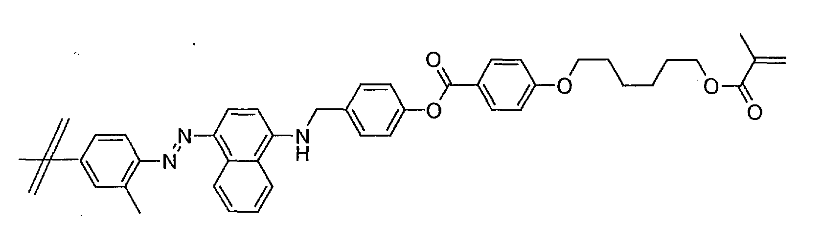 • the invention relates to new polymerizable dichromophoric dichroic azo dyes, mesogenic polymerizable mixtures containing the same and their use for the preparation of dichroic polymer networks and gels, which for instance may find application as uniform or patterned polarizers.