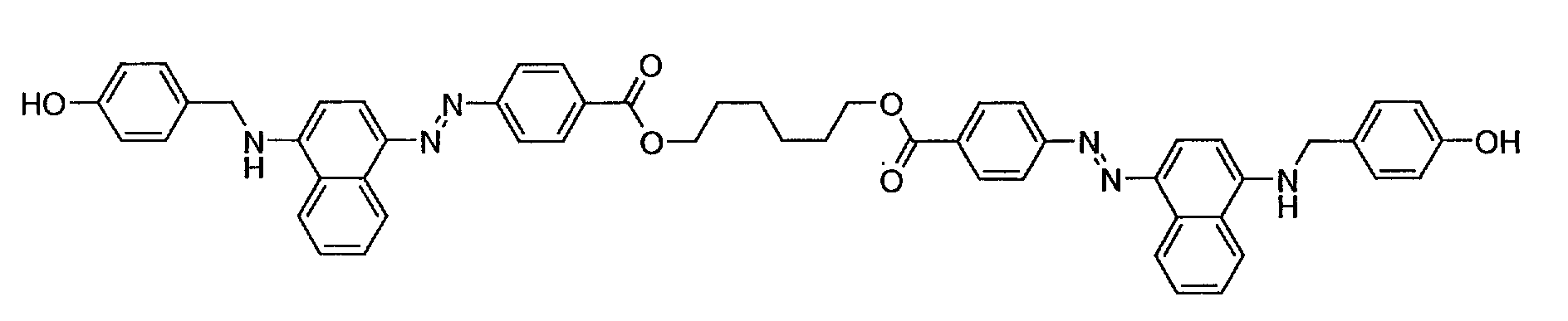 • the present inventors found that attaching two azochromophores to a linker leads to dyes combining very high order parameter, high coloring power and sufficient solubility, when at least one ring system, which increases the width of the molecule, is incorporated in the chromophore, and that the above described stability problem can be overcome if the dichroic dye contains polymerizable groups.