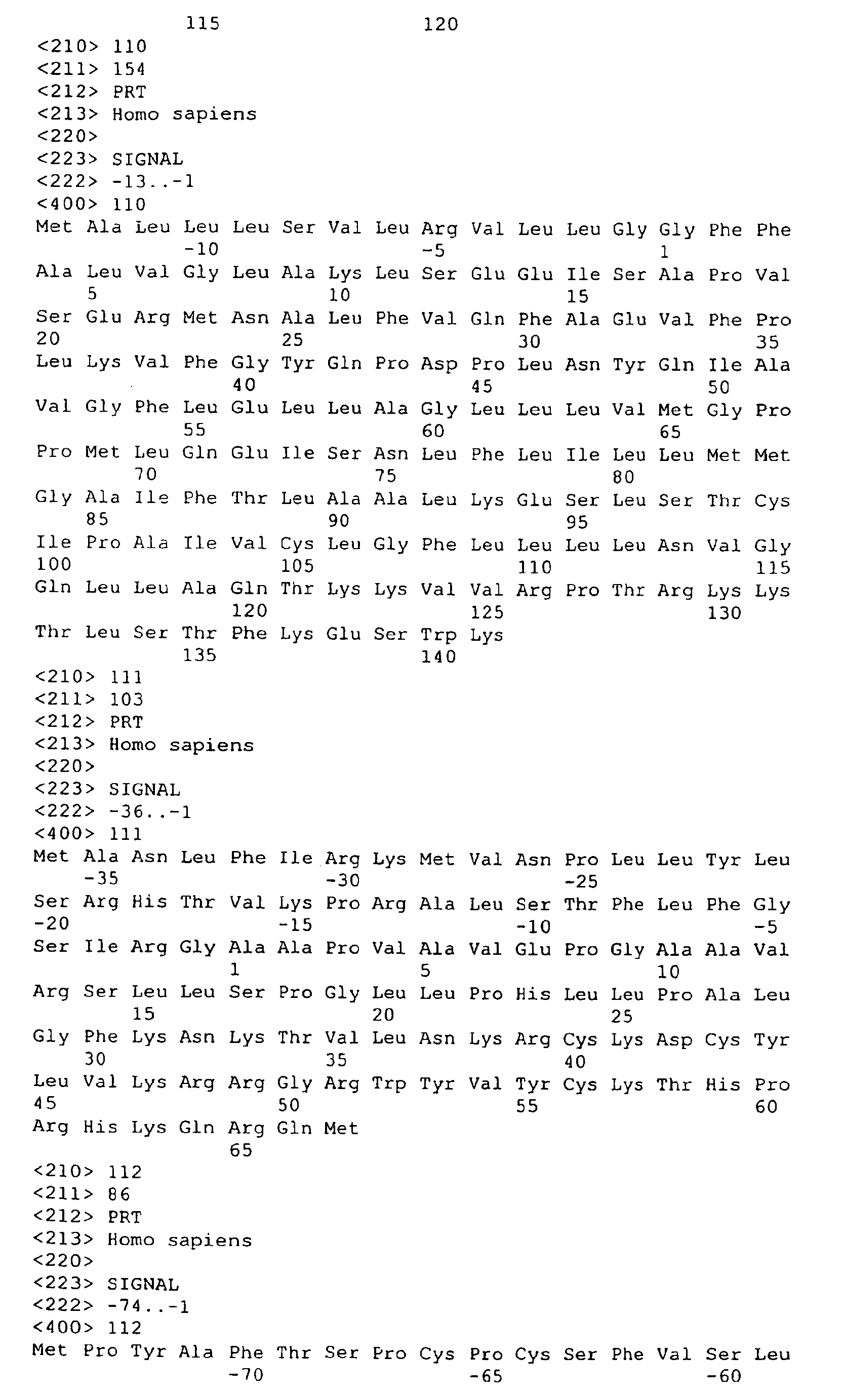- 5. A purified or isolated nucleic acid comprising the nucleotides of one of SEQ ID NOs: 40-59, 61-73, 75-82, 84, and 130-154 which encode the signal peptide.