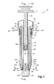 - the pusher 18 made for example of plastic, has a proximal end 18P, external to the body 14, and a distal end 18D, internal to the body 14, carrying a conventional piston 20.