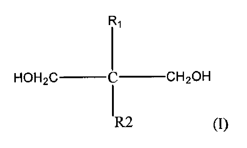 - Examples of compounds represented by the formula I include 1,1-dimethylol-1-aminoethane (DAE), 1,1-dimethylol-1-aminopropane (DAP), tris(hydroxymethyl)aminomethane (THAM), 1,1,1-trimethylolpropane (TMP), 1,1,1-trimethylolethane, pentaerythritol (PETOL), dipentaerythritol, tripentaerythritol and 1,1,1- trimethylol pentane.