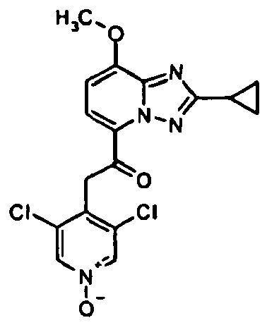 - HLKIKTJQVCVTJG-UHFFFAOYSA-N 1-(2-cyclopropyl-8-methoxy-[1,2,4]triazolo[1,5-a]pyridin-5-yl)-2-(3,5-dichloropyridin-4-yl)ethanone Chemical compound N12N=C(C3CC3)N=C2C(OC)=CC=C1C(=O)CC1=C(Cl)C=NC=C1Cl HLKIKTJQVCVTJG-UHFFFAOYSA-N 0.000 claims description 4