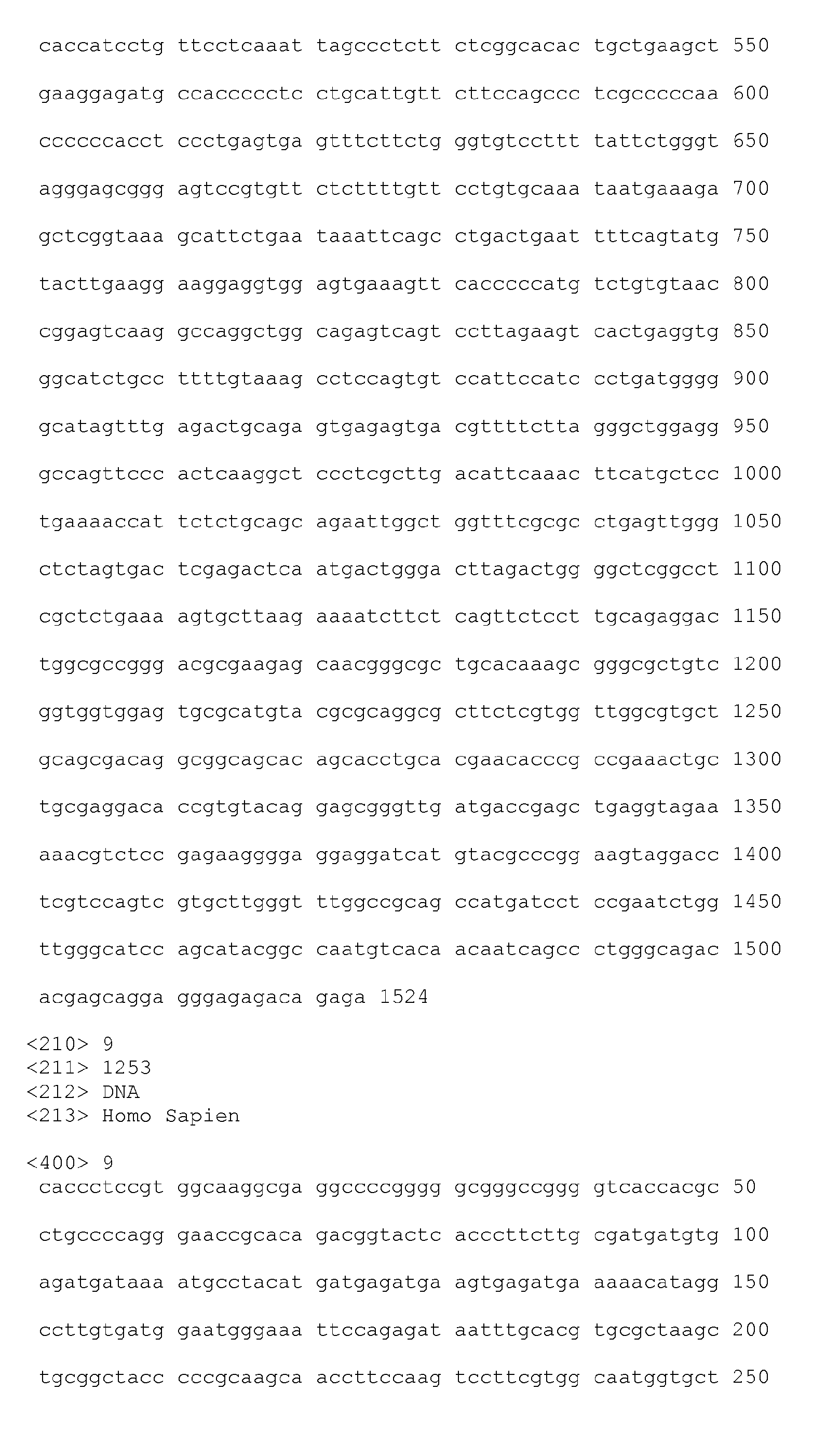 - nucleic acid fragments are usually at least about 5 nucleotides in length, alternatively at least about 6, 7, 8, 9, 10, 11, 12, 13, 14, 1 S, 16, 17, 18, 19, 20, 21, 22, 23, 24, 25, 26, 27, 28, 29, 30, 35, 40, 45, 50, 55, 60, 65, 70, 75, 80, 85, 90, 95, 100, 105, 110, 115, 120, 125, 130, 135, 140, 145, 150, 155, 160, 165, 170, 175, 180, 185, 190, 195, 200, 210, 220, 230, 240, 250, 260, 270, 280, 290, 300, 310, 320, 330, 340, 350, 360, 370, 380, 390, 400, 410, 420, 430, 440, 450, 460, 470, 480, 490, 500, 510, 520, 530, 540, 550, 560, 570, 580, 590, 600, 610, 620, 630, 640