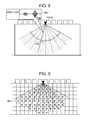 - Nonpatent Document 6 displays measurement data points obtained by a plurality of tests on a screen as point groups. With a desired cross section displayed, for example, when two points corresponding to upper- and lower-end echoes are specified by using a mouse or keyboard of a computer, the distance between the two points is output. With the two-dimensional phased array method, it is necessary to find a screen in which upper- and lower-end echoes are simultaneously included at the time of data storage. With the three-dimensional ultrasonic testing method, on the other hand, it is only necessary to perform a series of data storage for a predetermined testing range and then find a target cross section. The latter method makes testing procedures very efficient and is advantageous.