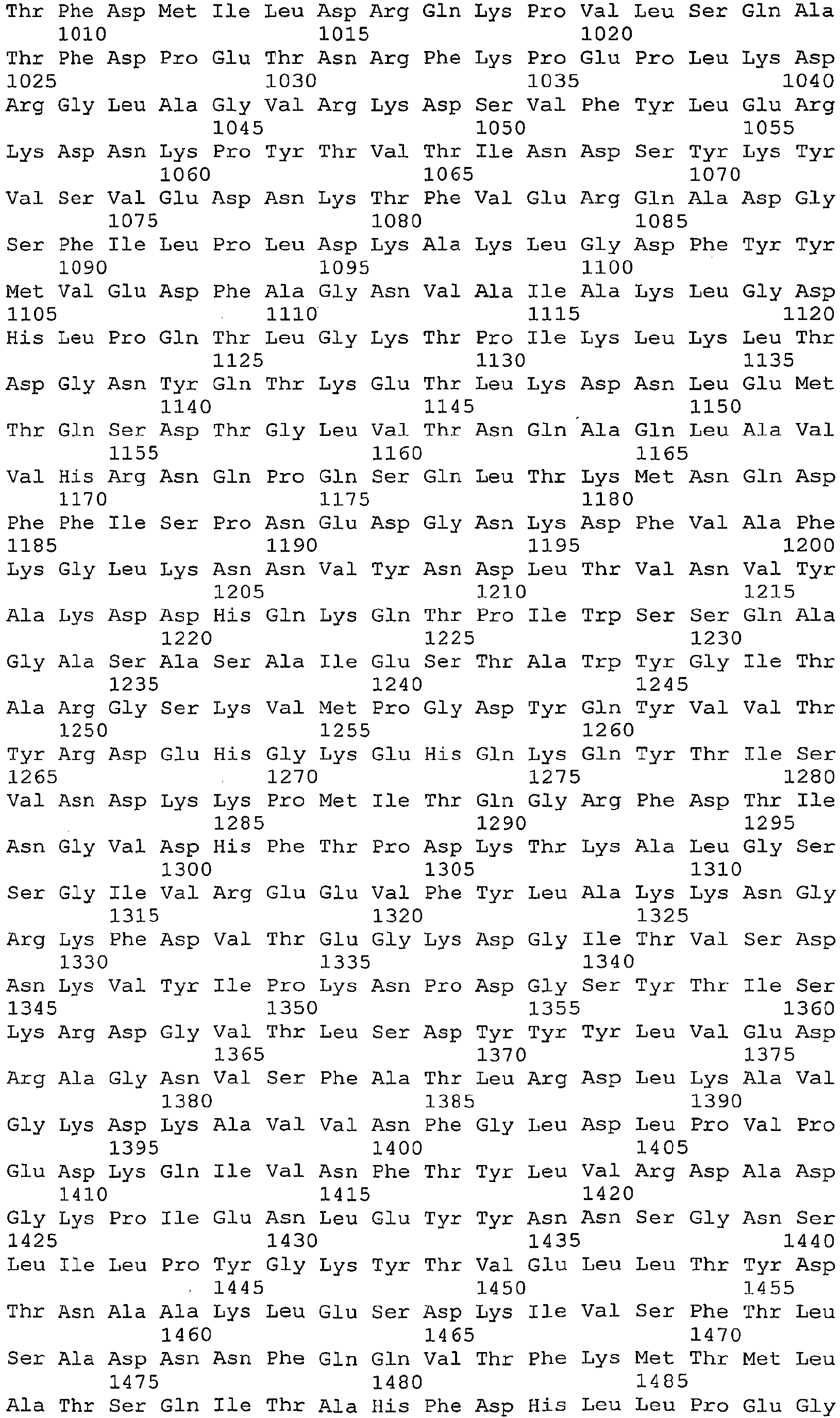 - GAS57 is also referred to as 'Spy0416' (M1), 'SpyM3_0298' (M3), 'SpyM18_0464' (M18) and 'prtS.' GAS57 has also been identified as a putative cell envelope proteinase. See WO 02/34771 and US 2006/0258849 . There are 49 GAS57 sequences from 17 different M types (1, 2, 3, 4, 6, 11, 12, 18, 22, 23, 28, 44/61, 68, 75, 77, 89, 94); according to the Centers for Disease Control, the 17 different M types account for over 95% of pharyngitis cases and about 68% of the invasive GAS isolates in the United States.