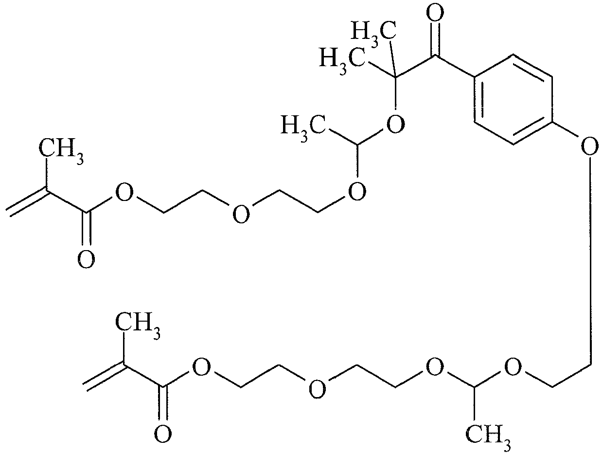 - ACMLJHLHCHOQJU-UHFFFAOYSA-N CC(OCCOCCOC(C(C)=C)=O)OC1(CCCCC1)C(c1ccccc1)=O Chemical compound CC(OCCOCCOC(C(C)=C)=O)OC1(CCCCC1)C(c1ccccc1)=O ACMLJHLHCHOQJU-UHFFFAOYSA-N 0.000 description 1