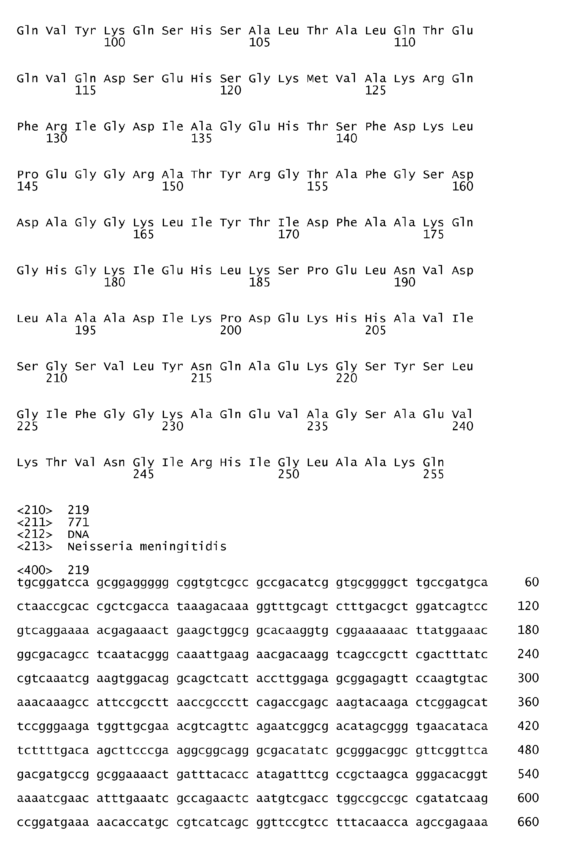 - the present invention relates to Neisseria ORF2086 proteins (Subfamily A and Subfamily B), which may be isolated from bacterial strains such as those of Neisseria species, including strains of Neisseria meningitidis (serogroups A, B, C, D, W-135, X, Y, Z and 29E), Neisseria gonorrhoeae, and Neisseria lactamica, as well as immunogenic portions and/or biological equivalents of said proteins.