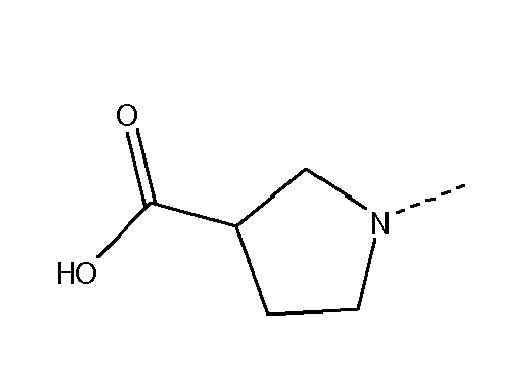 - o R' and R" together with the nitrogen atom to which they are attached form a 4 to 6 membered, saturated heterocyclic ring which is substituted with one substituent selected from a carboxy group and a methyl group which is substituted with a carboxy group.