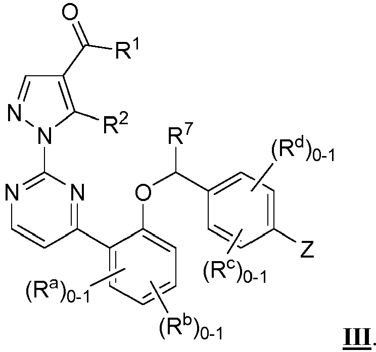 - Embodiment A is compounds of Formula I, II, III or VI wherein Z is selected from the group consisting of: and more particularly it is selected from the group consisting of: