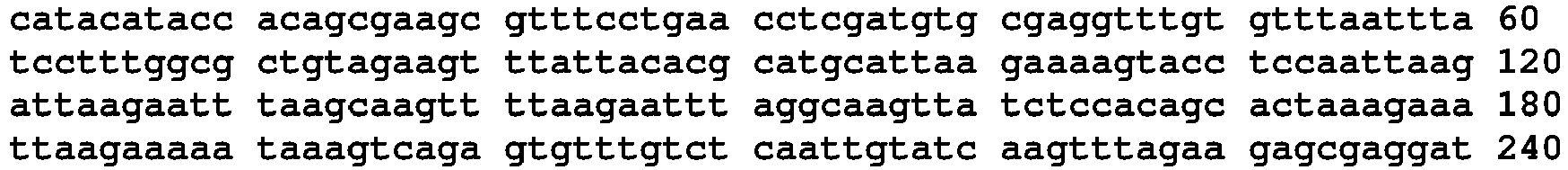 - a sequence selected for use in expression of a gene suppression agent can be constructed from a single sequence derived from one or more target pests and intended for use in expression of an RNA that functions in the suppression of a single gene or gene family in the one or more target pests, or that the DNA sequence can be constructed as a chimera from a plurality of DNA sequences.