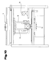 - the traction drives are each mounted on a frame 68a, 68b, of which the right frame 68a with the conveyor track 50a overlapping guide carriage 51a and the left frame 68b with the conveyor track 50b overlapping guide carriage 51b is firmly connected.