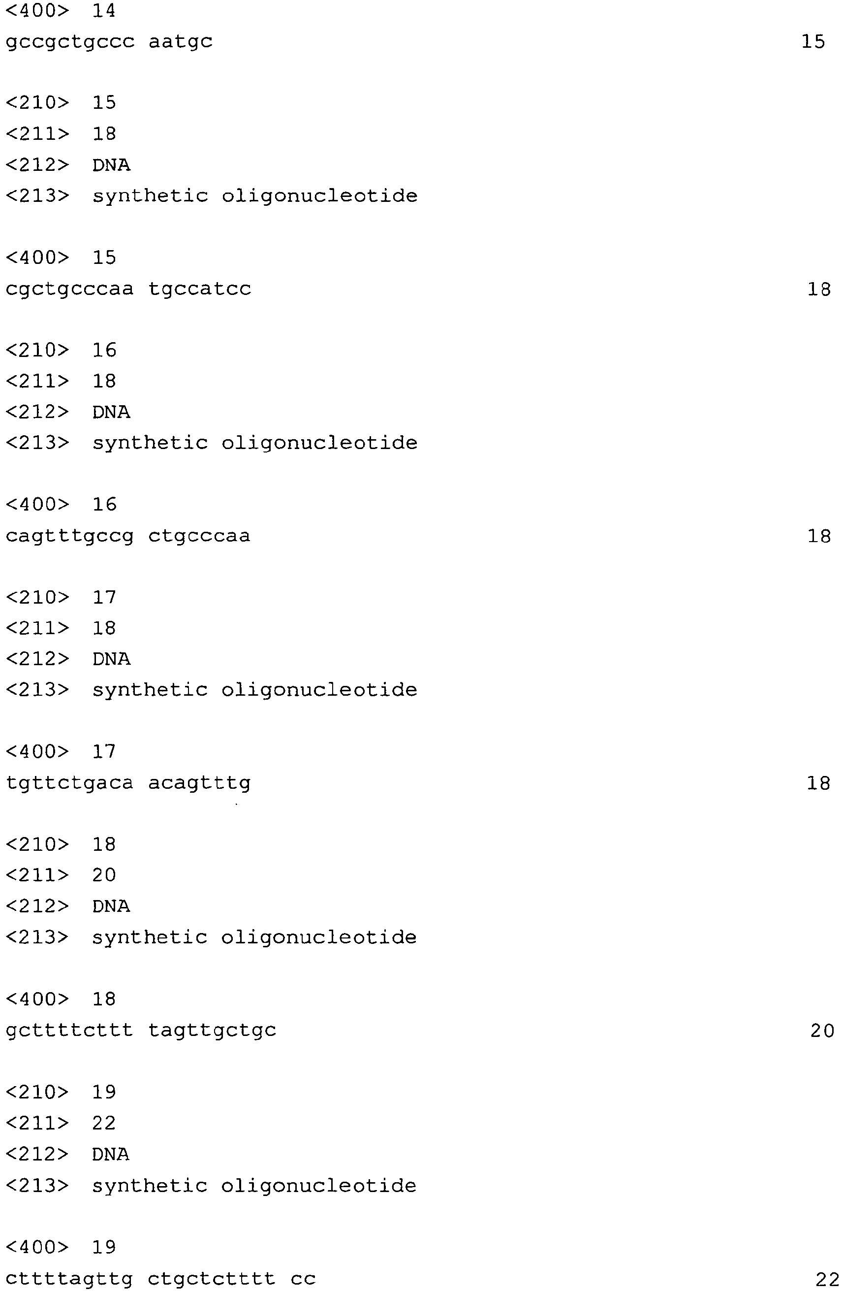 - the present inventors have succeeded in designing and synthesizing those nucleotide sequences and antisense oligonucleotide compounds which have higher exon skipping effect on exon 19, 41, 45, 46, 44, 50, 55, 51 or 53 of the dystrophin gene.
